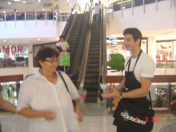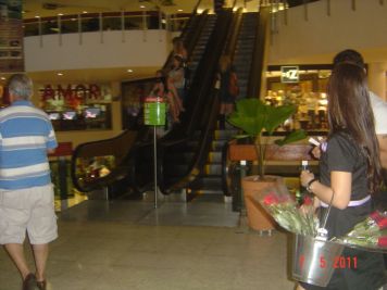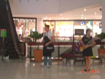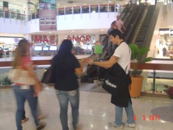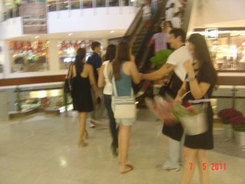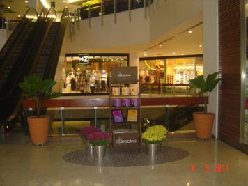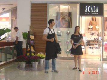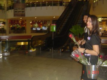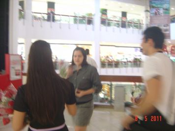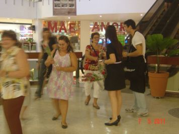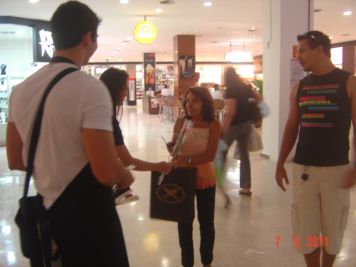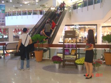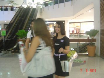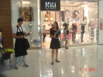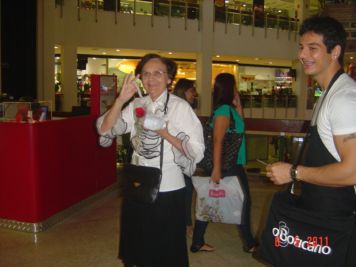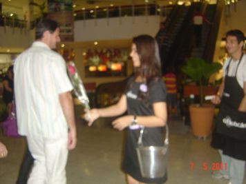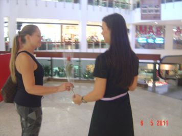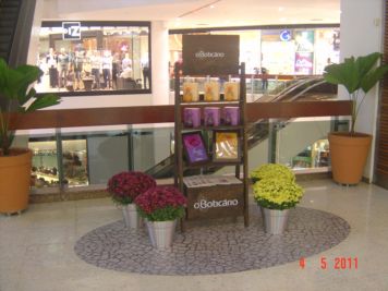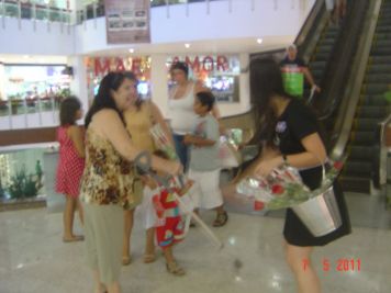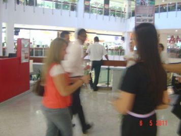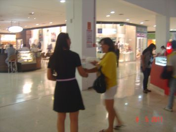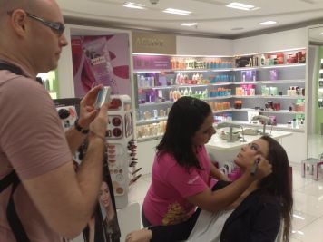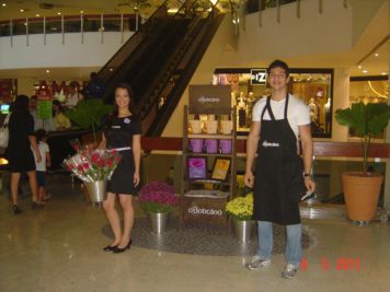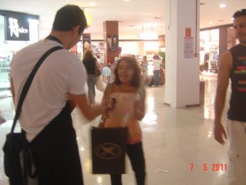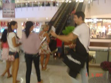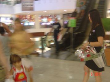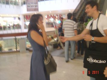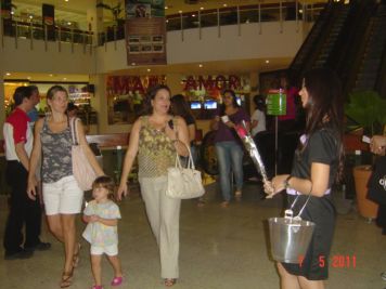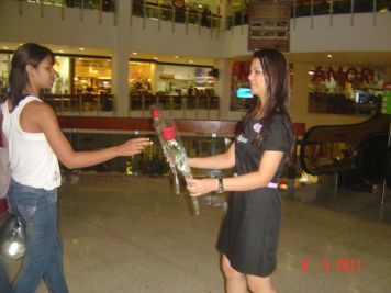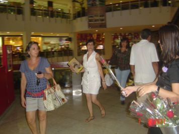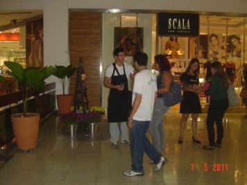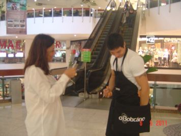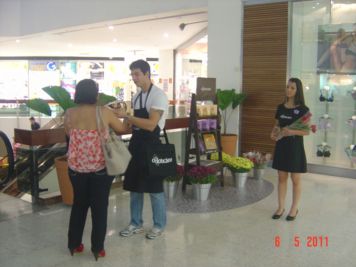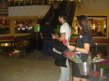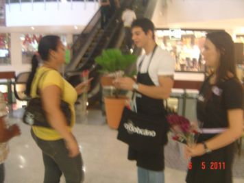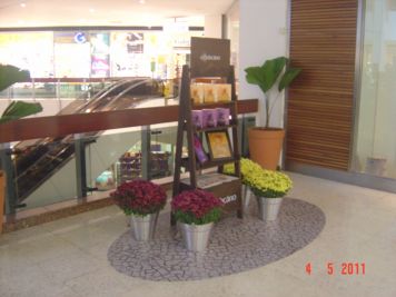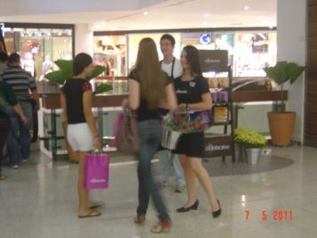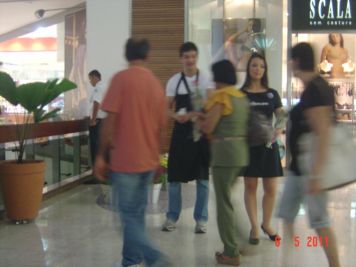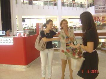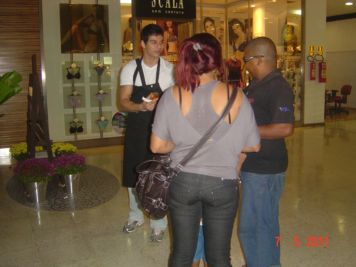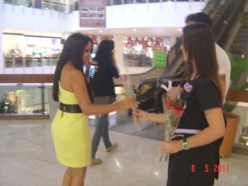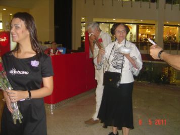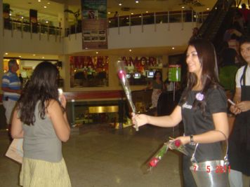 O Boticário fez uma ação de sampling no Goiabeiras Shopping, com a entrega de fitas olfativas e botões de rosas.