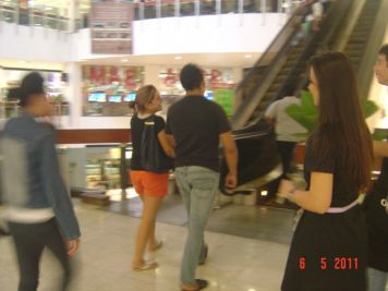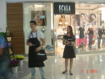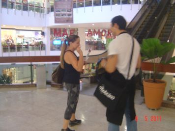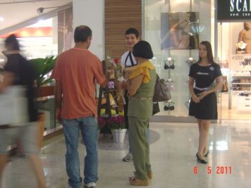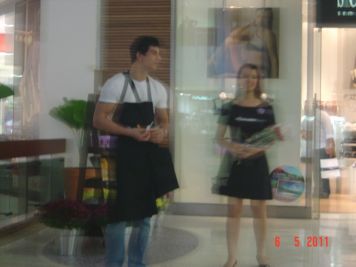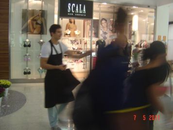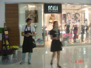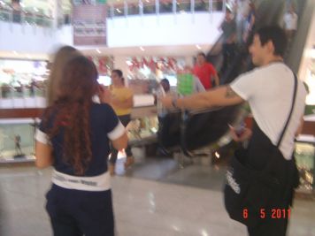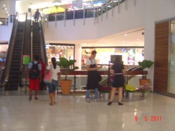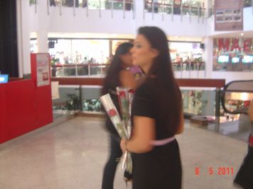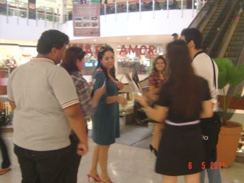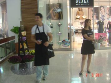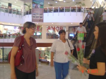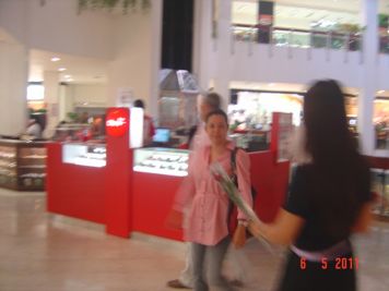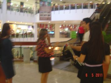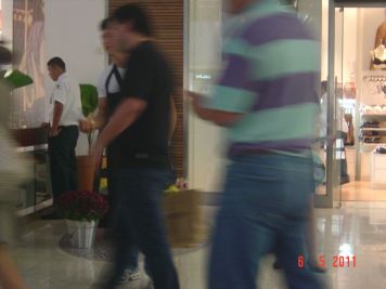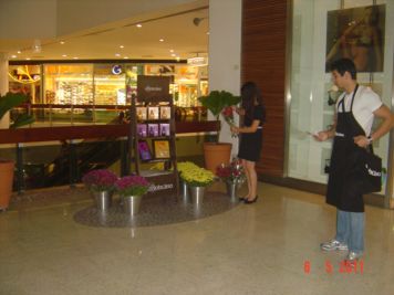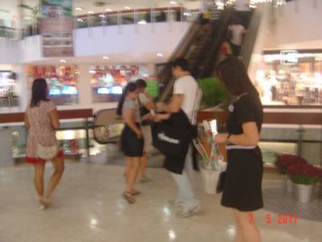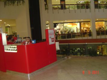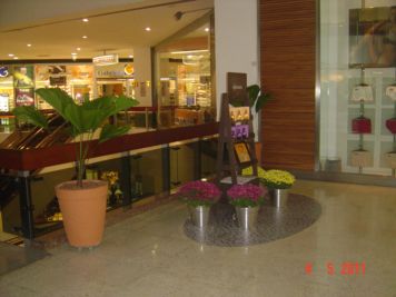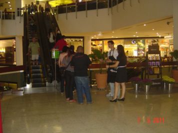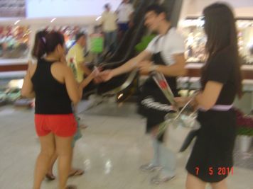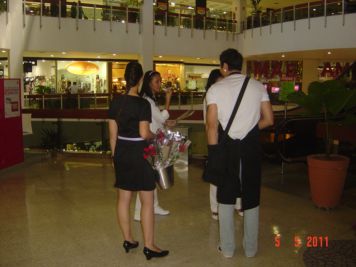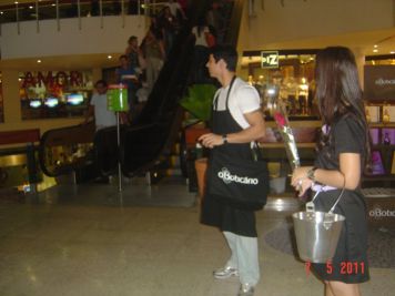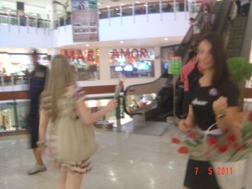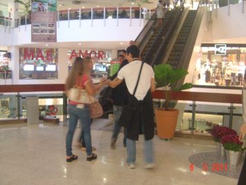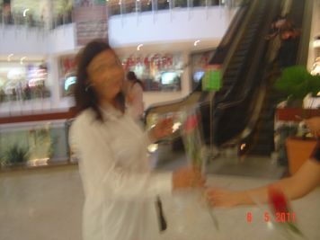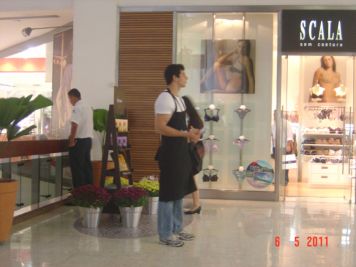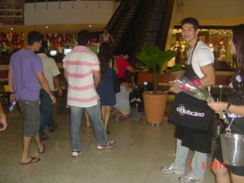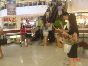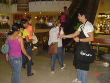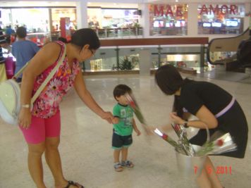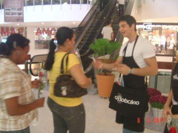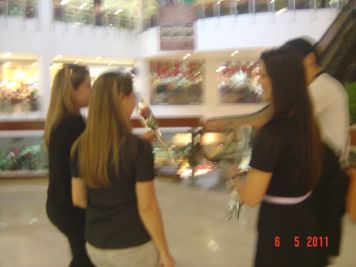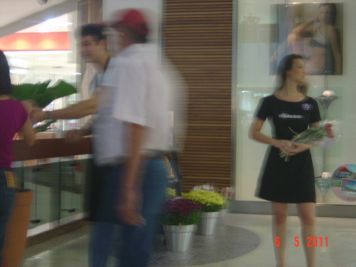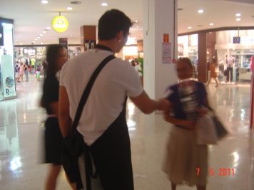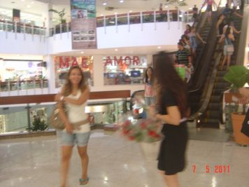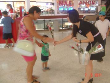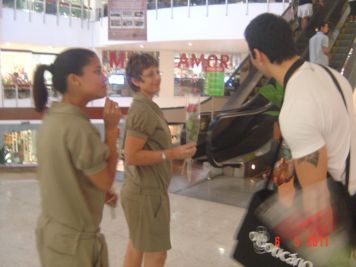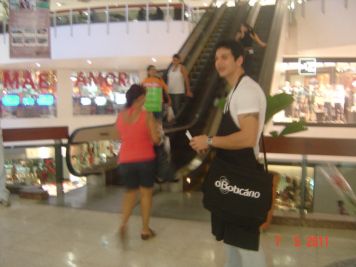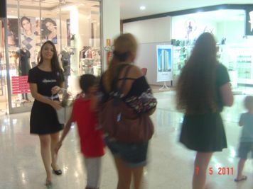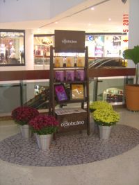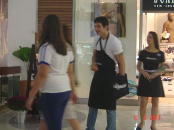 O Boticário fez uma ação de sampling no Goiabeiras Shopping, com a entrega de fitas olfativas e botões de rosas.