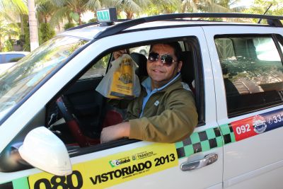 A ação consiste em percorrer os principais pontos de taxis de Cuiabá e Várzea Grande abordando os taxistas e entregando brindes do Goiabeiras Shopping.